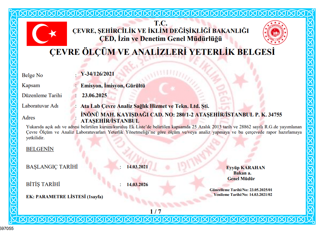 ✅ Akredite Ölçümler: Çevre Şehircilik Bakanlığı ve TÜRKAK onaylı raporlama.